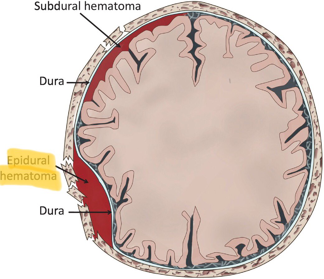 Injurymechanisms On Twitter 5 10 Epidural Hematoma Blood Accumulates Between The Dura And Skull Head Impact Usually Acceleration Deceleration Mechanism Most Have Assoc Skull Fracture Results In Laceration Middle Meningeal Artery Vein