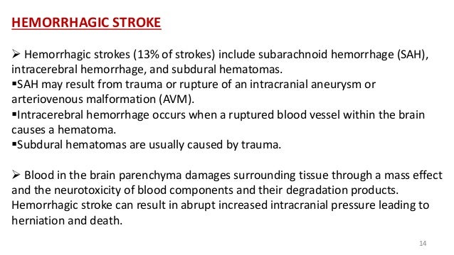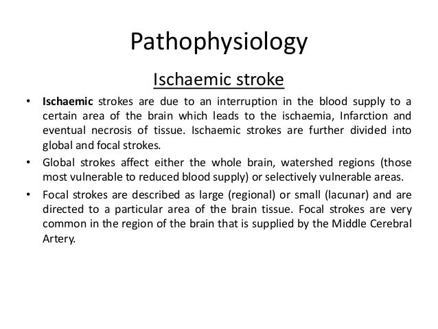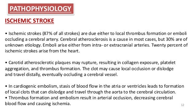 Find out the key signs and symptoms. Lacunar infarcts are usually seen in the subcortical areas of the brain and occur due to small vessel. Learn Why This Option May Be Right for Your Eligible Patients. Other less frequent causes include venous septic air or fat emboli. 160000 deaths Modifiable risk. PATHOPHYSIOLOGY OF HEMORRHAGIC STROKE Explosive entry of blood into the brain parenchyma structurally disrupts neurons.